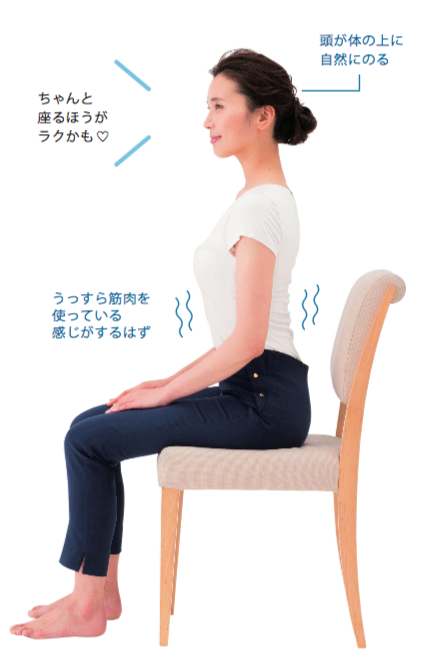 骨盤を立てて座る、です。