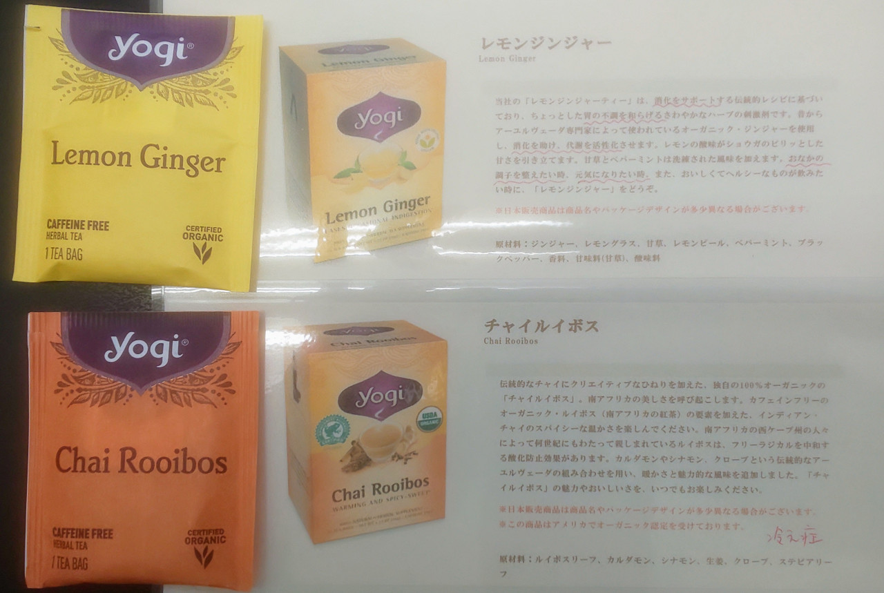 因みに、セルフサービスとして用意しておりますハーブティーならこの2つがオススメです。元気になるタイプのものです。