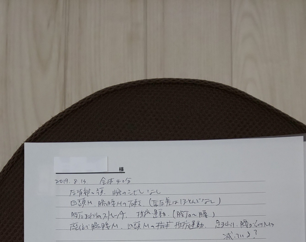 住吉ゆき整体院では、施術しっぱなしではありません。当院でもカルテはつけてますので、気になる方にはいつでもお見せしますので、遠慮なくお申し付けください。きっと施術効果も上がります。