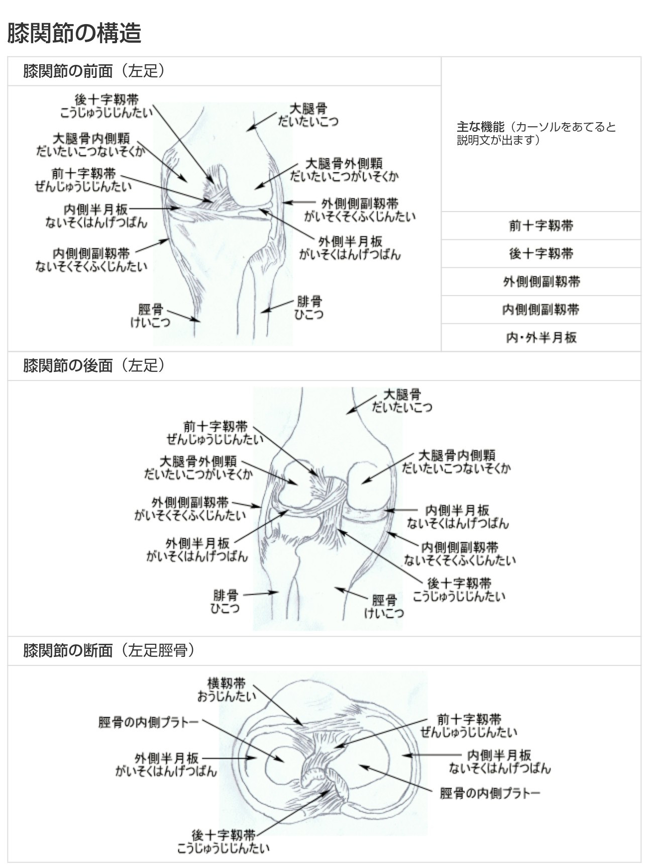 特に、内側側副靭帯と内側半月板は一体化されている状態のために同時に痛めやすいです。