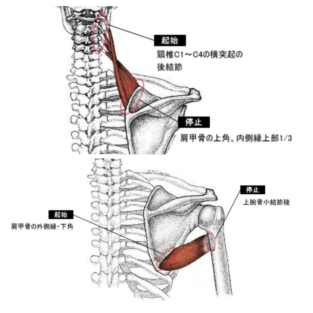 肩甲骨上角に付着する筋肉