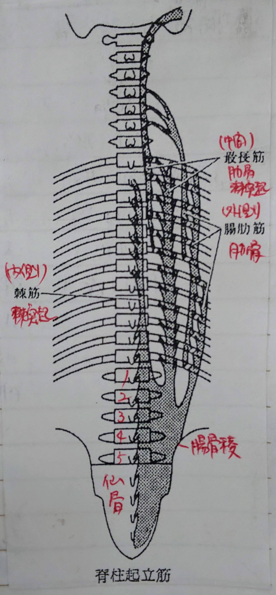 後ー脊柱起立筋、僧帽筋、肩甲下筋