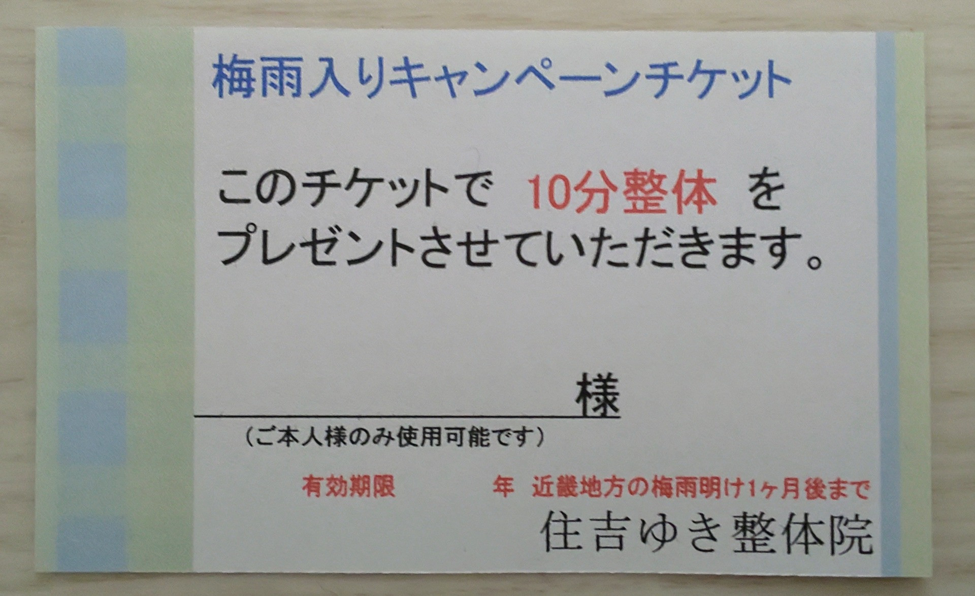 あと、梅雨入りしてますので、来院された方には梅雨入りキャンペーンチケットもお配りしております。