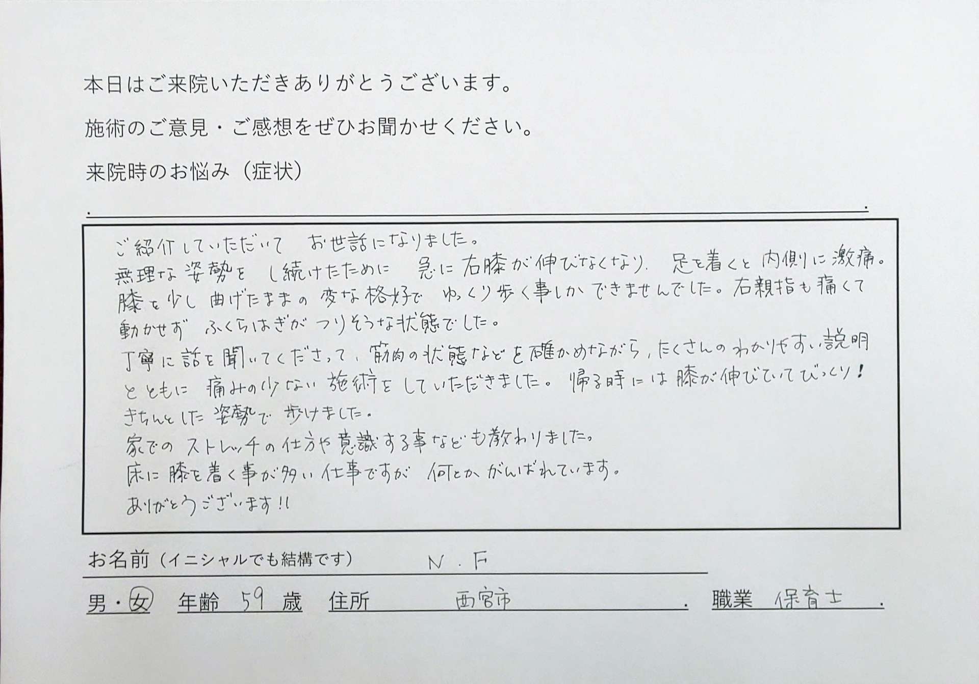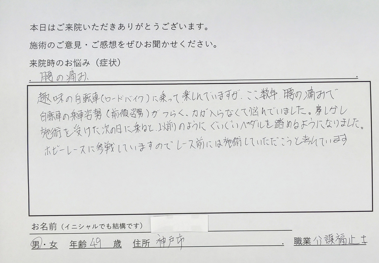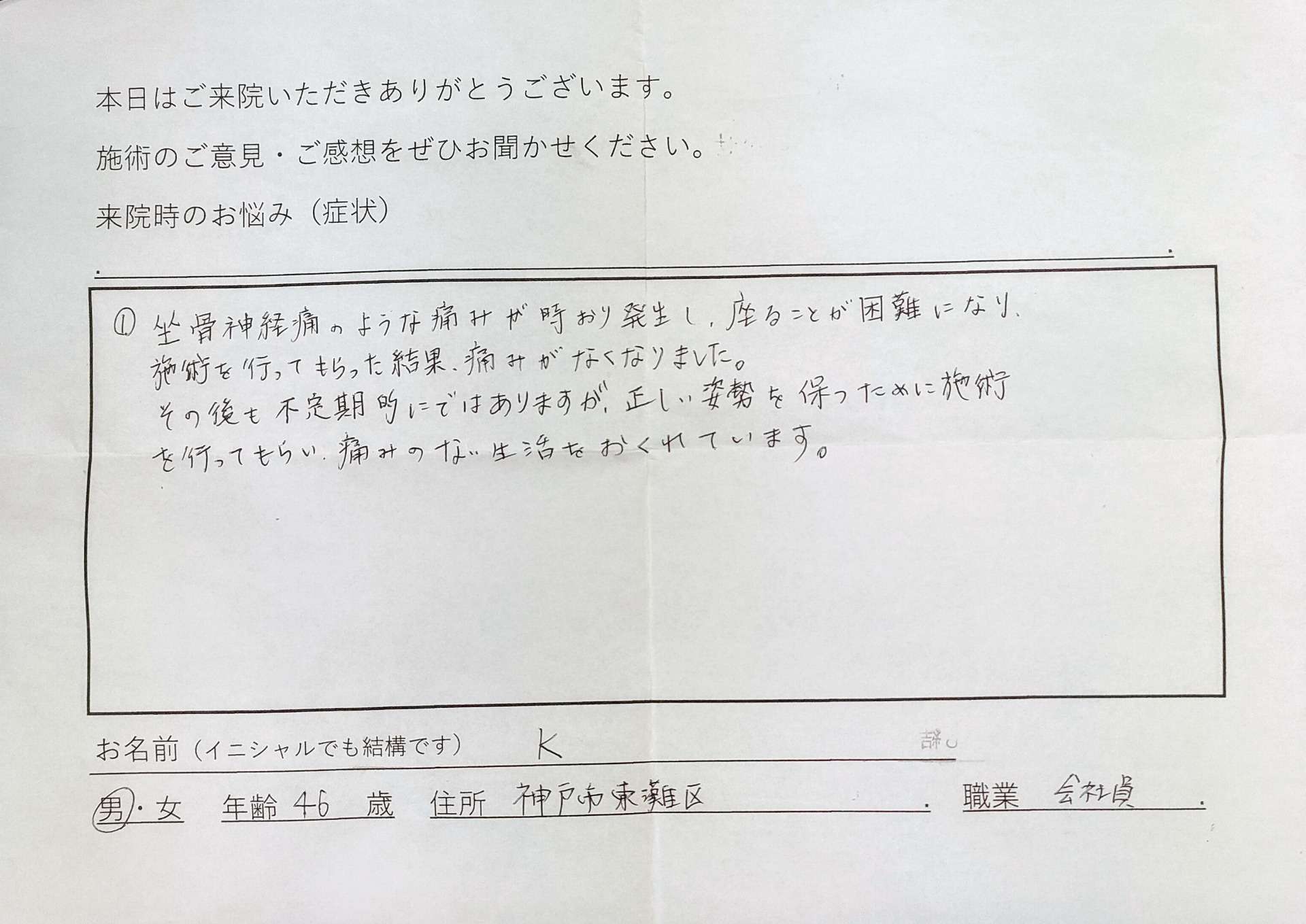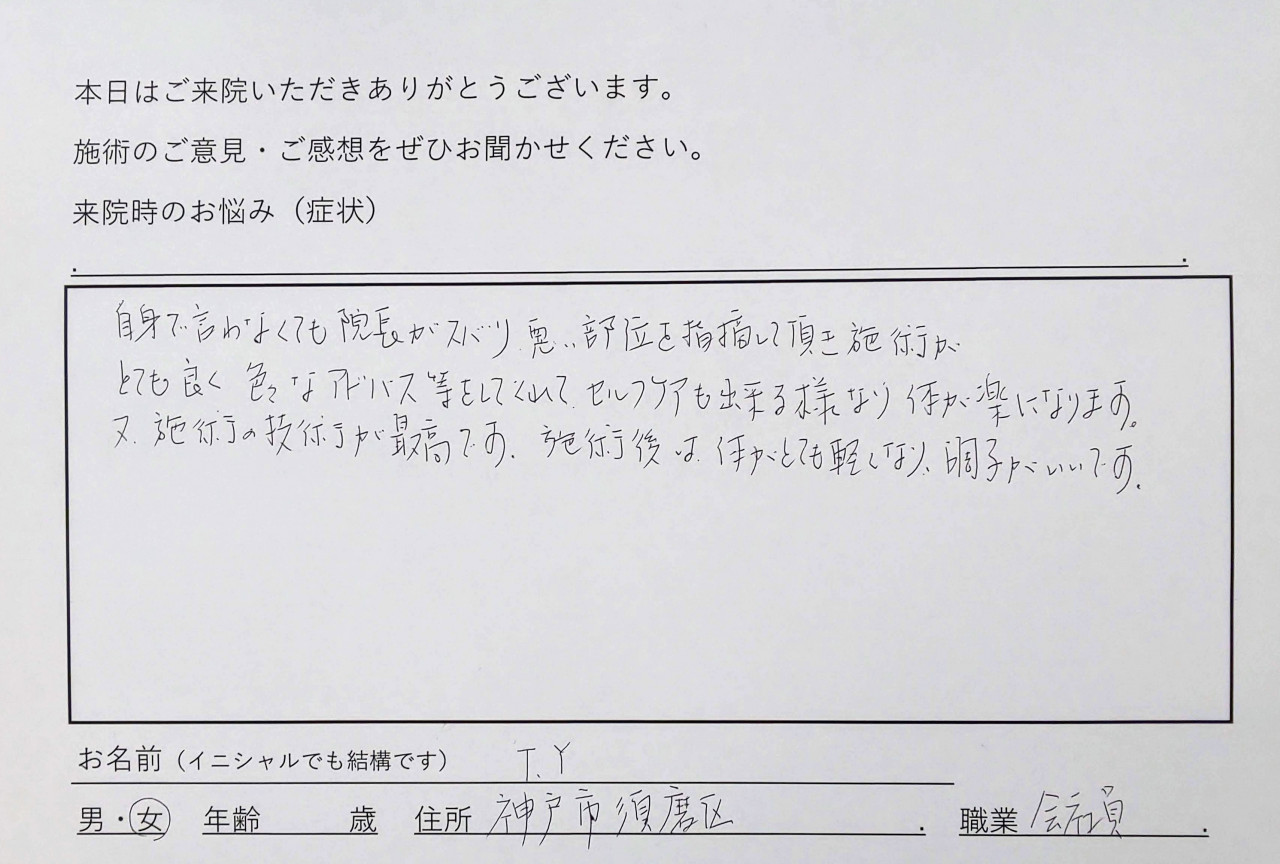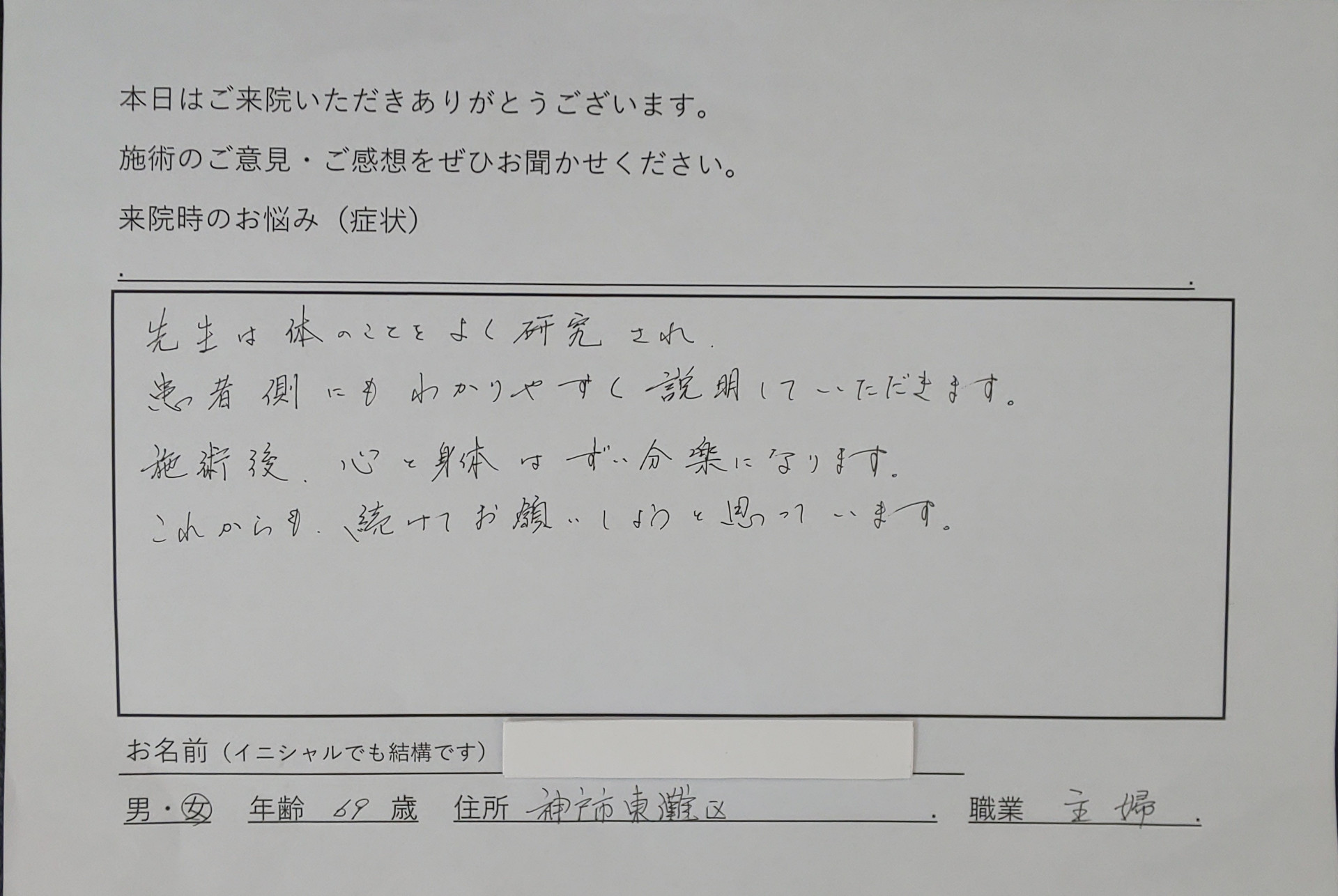 東灘区の整体院は患者様の声を大切にしています